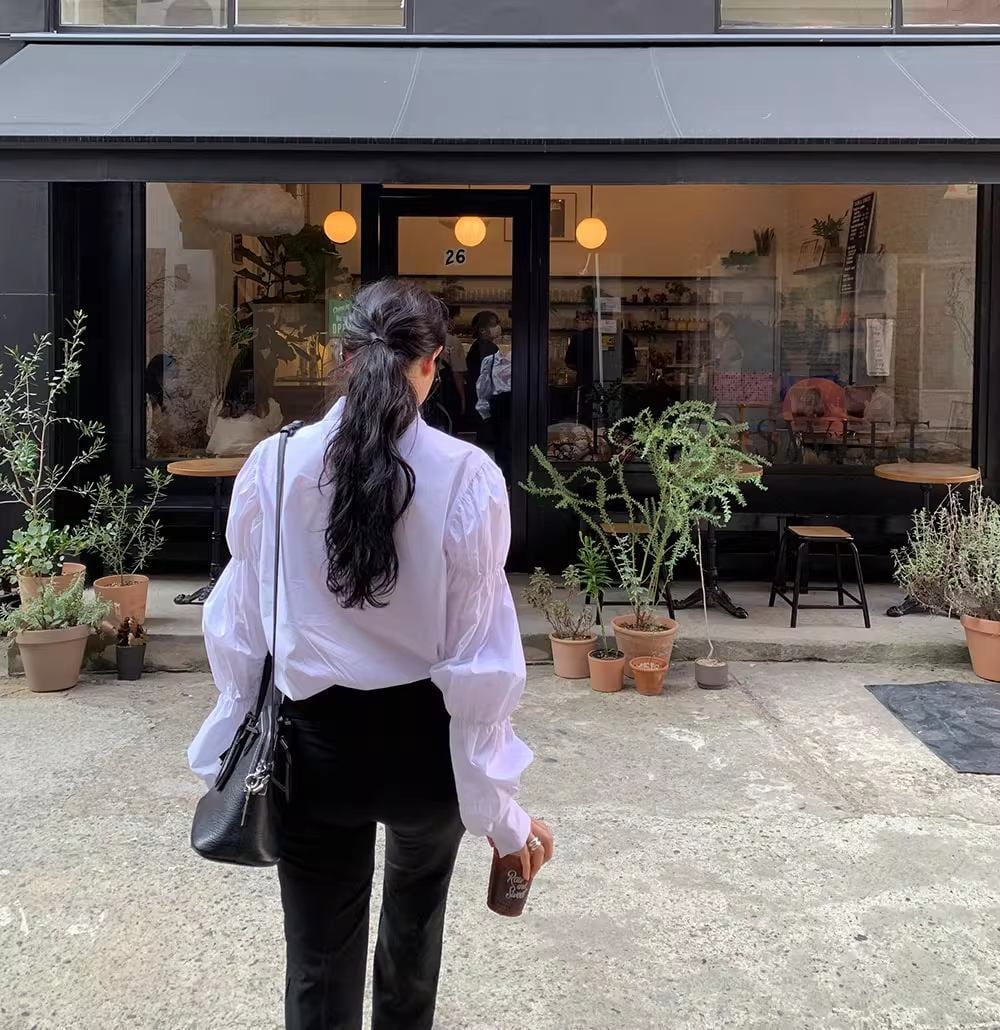 秋シーズンにぴったりのこのブラウスは、トレンド感満載のパフスリーブが特徴で、さりげなくお洒落を楽しむことができます。袖コンシャスデザインが女性らしさを引き立て、さまざまなスタイリングに対応可能なアイテムです!