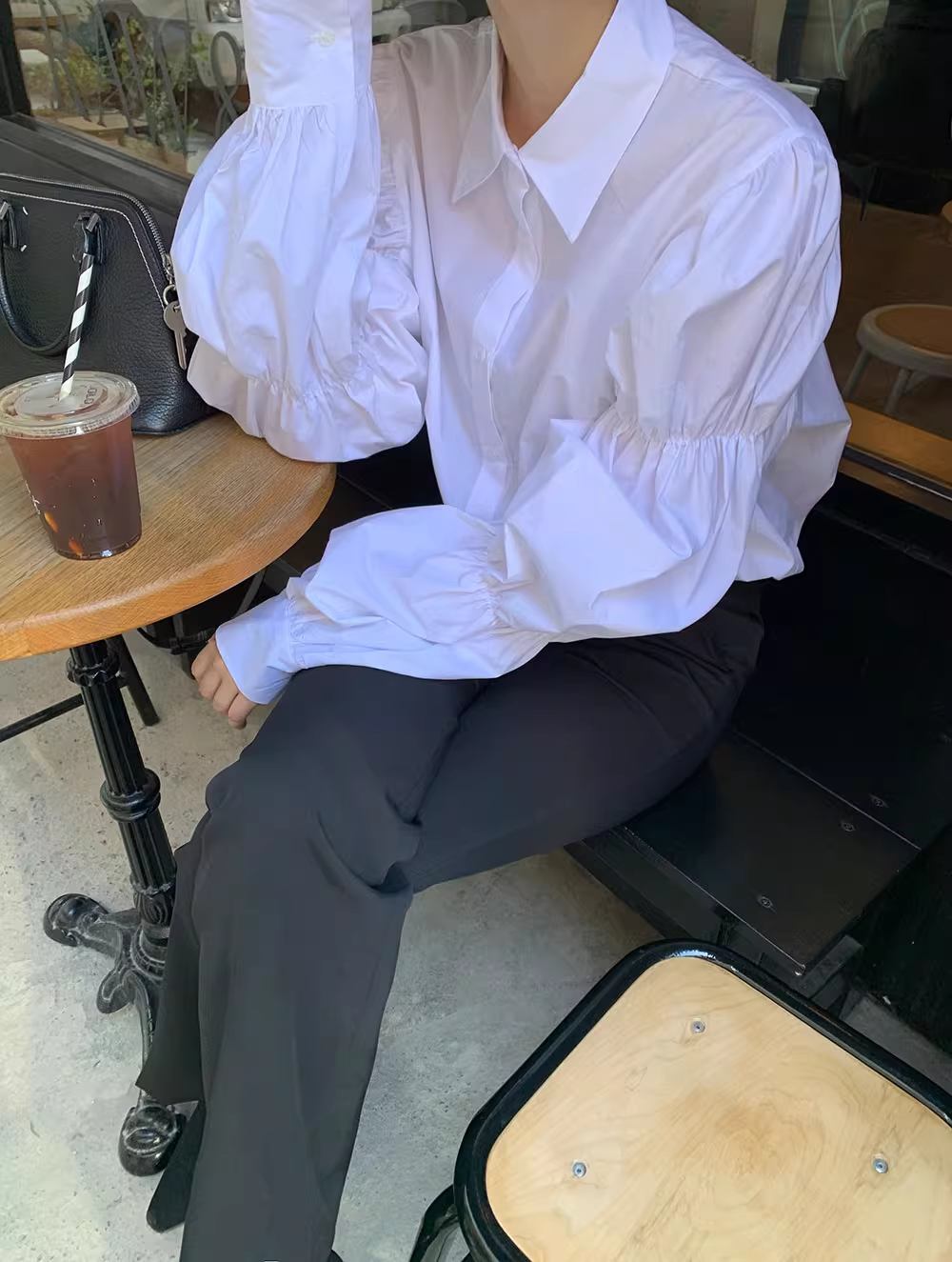 ギャザー袖 袖コンシャスブラウス パフスリーブ シャツ 長袖 秋冬 tp1480