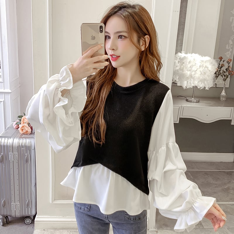 異素材ミックス ブラウス バルーンスリーブ 袖コンシャス ドッキング 大人きれい おしゃれ お出かけ 春秋 tp0465