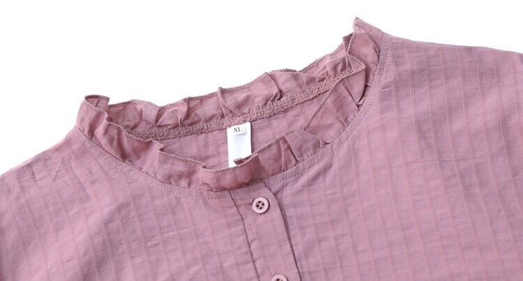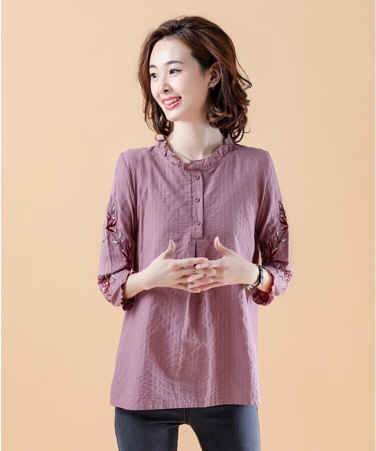 刺繍ブラウス スタンドカラー フリル 七分袖 大人カジュアル フェミニン 休日コーデ おしゃれ 春夏秋 大きいサイズ tp0819