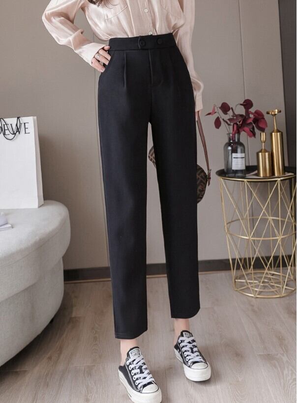 足首が細く見える九分丈で、タックがさらに美脚効果に。