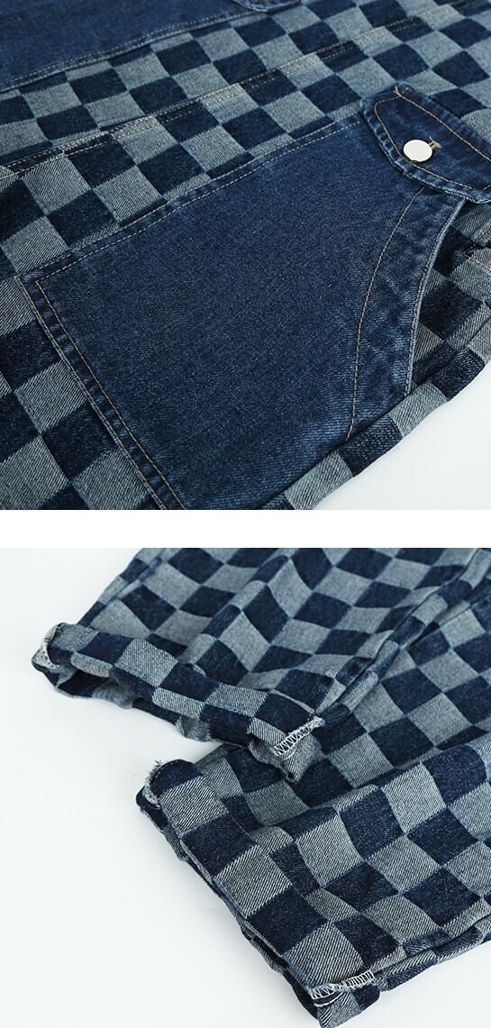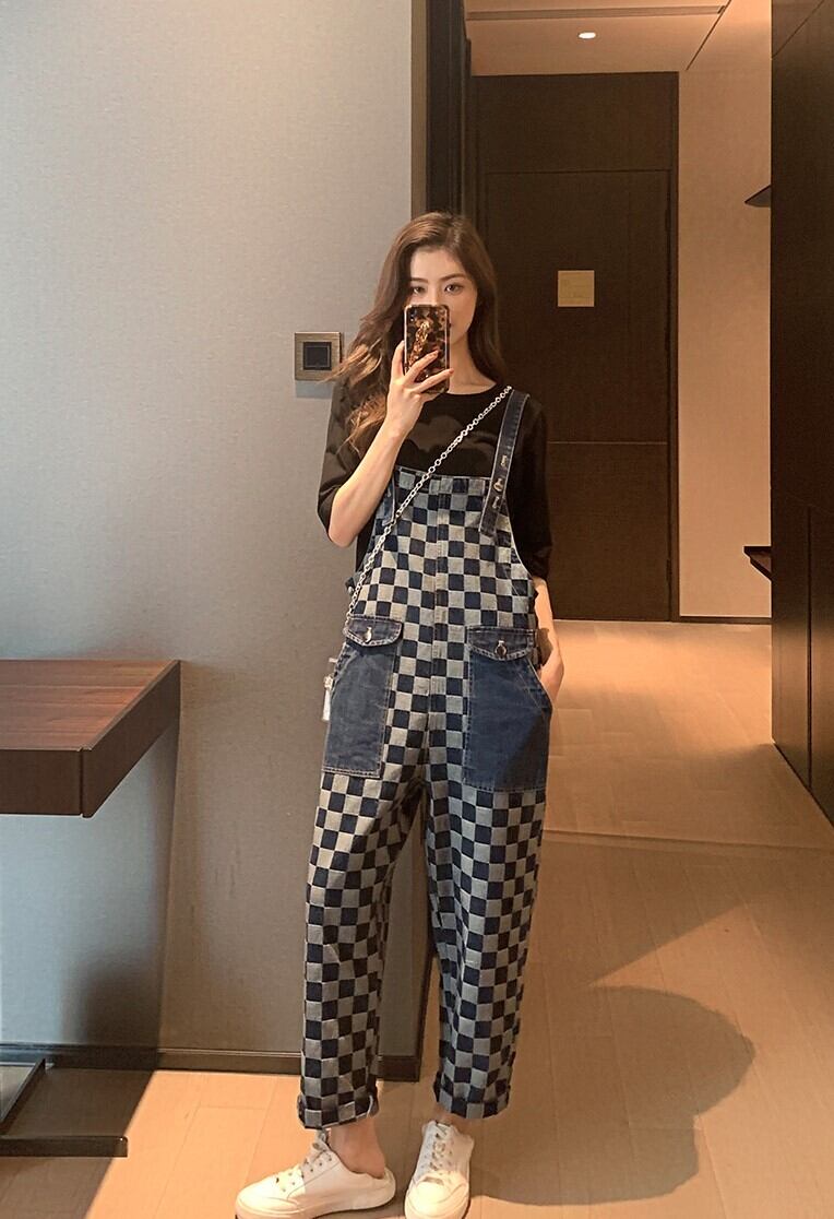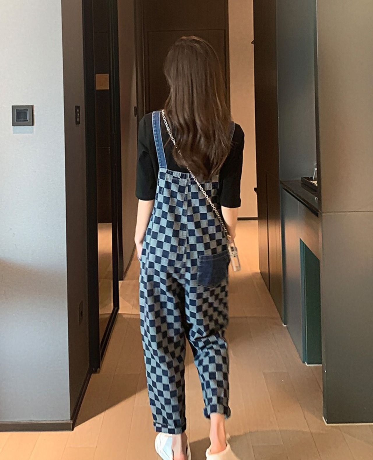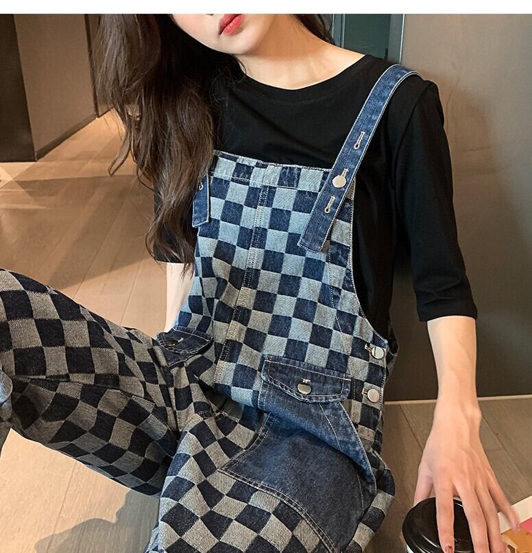 市松模様 デニム サロペットパンツ オーバーオール 春夏秋 カジュアル 個性的 al0108