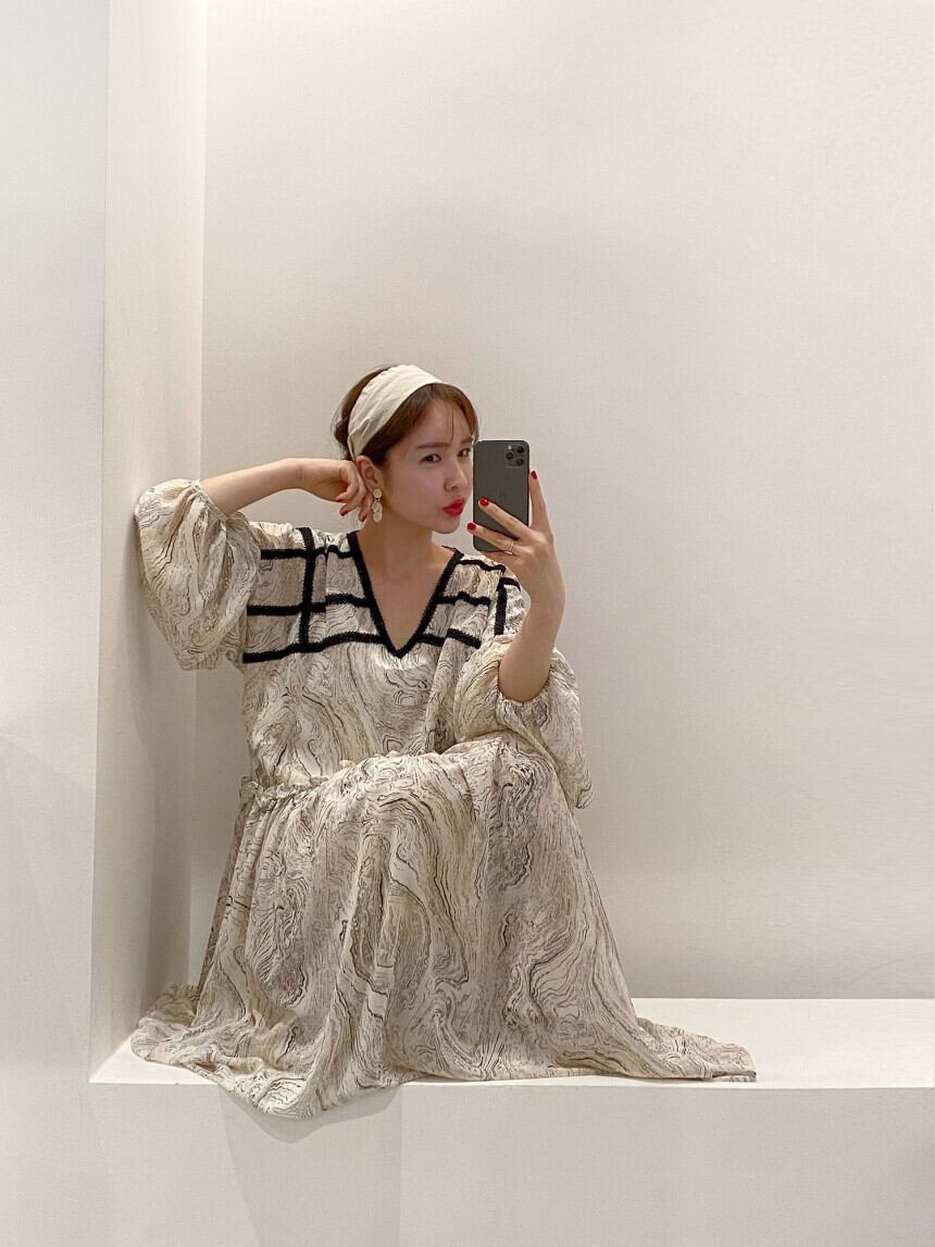 ゆるさのあるシルエットが大人可愛いマーブル模様のワンピース♪