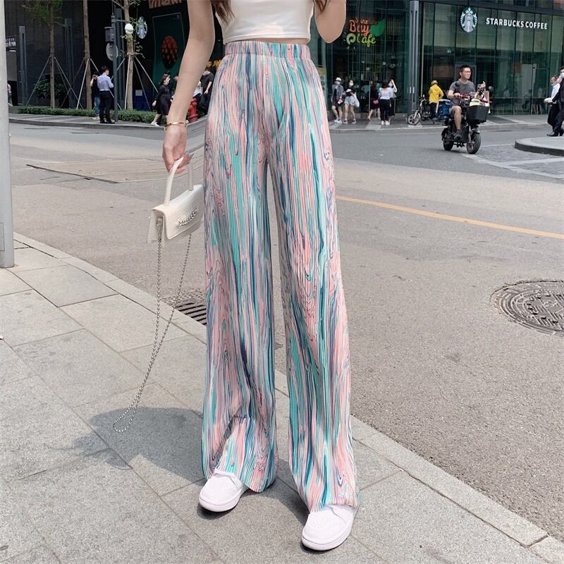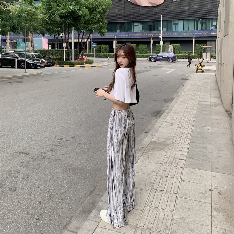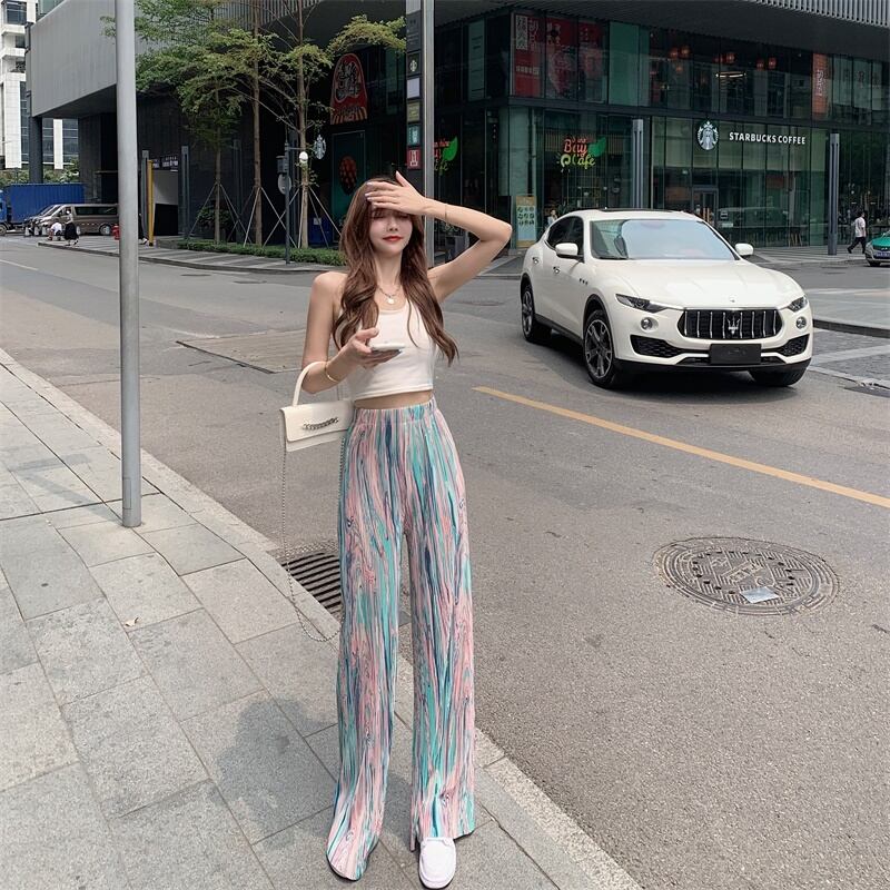 マーブル模様パンツ ミックスカラー カジュアルパンツ ウエストゴム 春夏 キュート pt0167