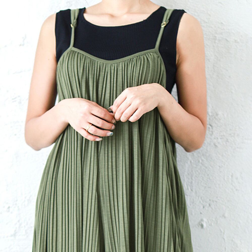 たっぷりプリーツが旬の装いのサロペットパンツ。
