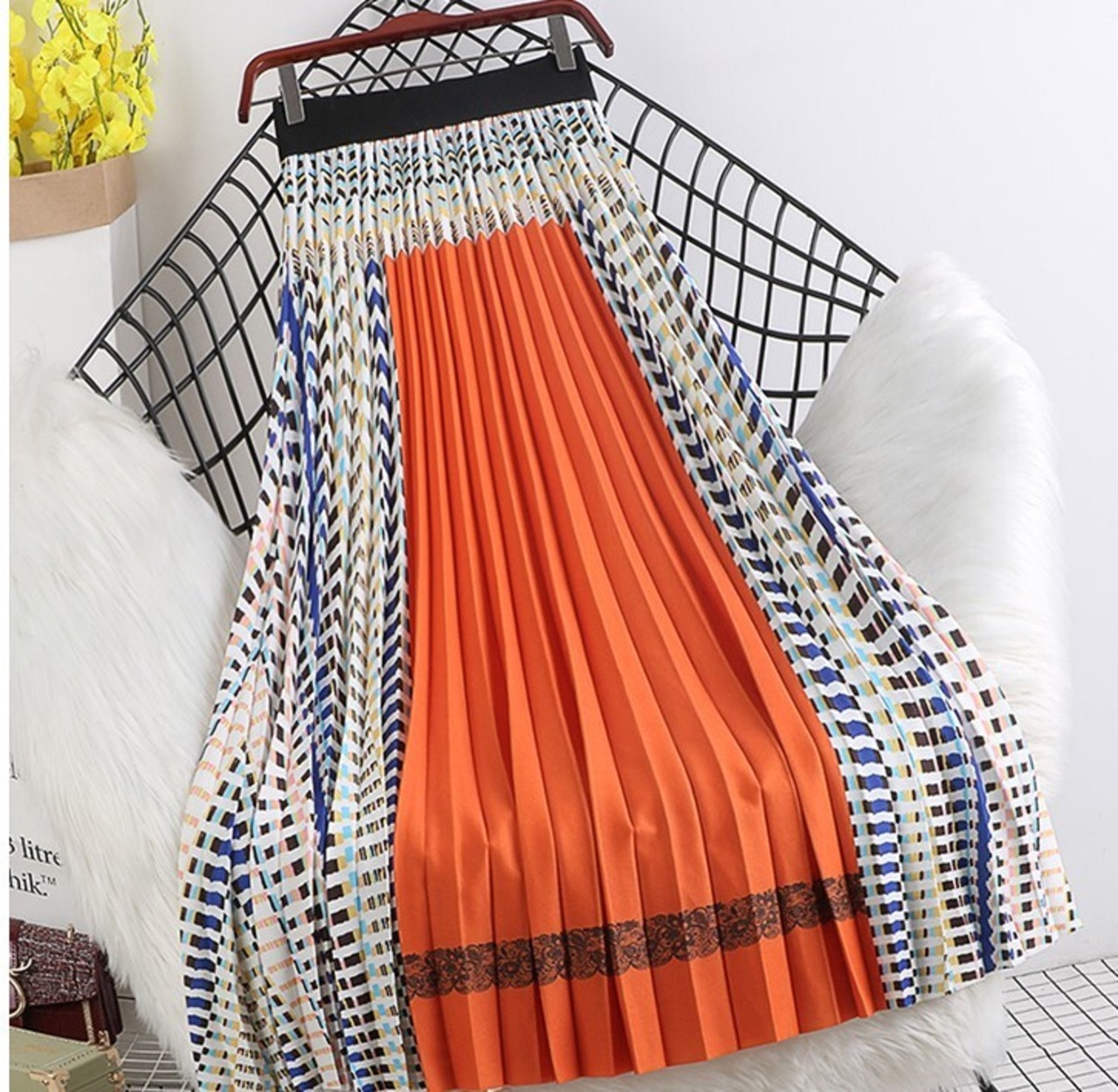 柄プリント プリーツスカート マルチカラー 春夏秋 大人きれい ミモレ丈 オフィスコーデ sk0250