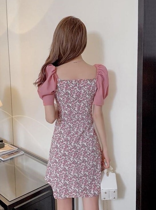 2way花柄ワンピース パフスリーブ ミニ丈 アシンメトリー 春夏秋 大人かわいい オフショル ガーリー op0591