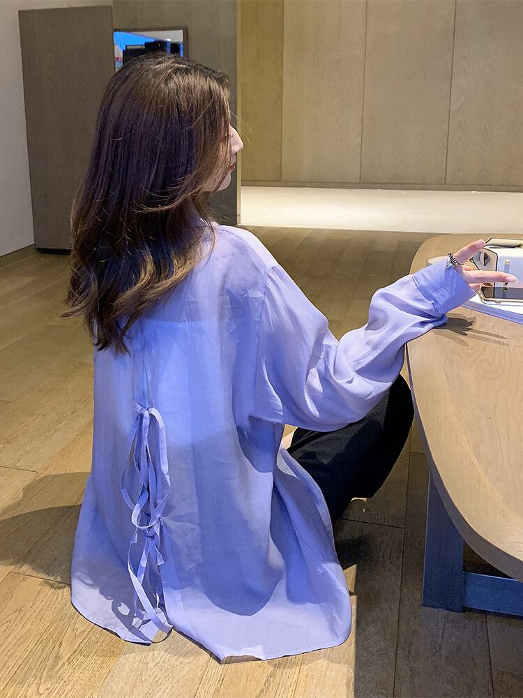 バックリボンブラウス シャツ バックシャン シアー 透け感 春夏秋 大人かわいい 20代 30代 40代 50代 tp0862