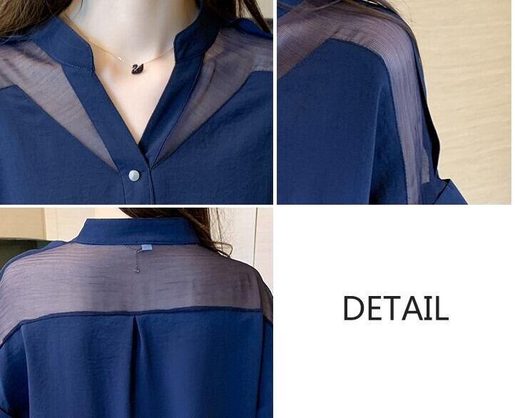 トレンドライクな透け感のあるシアー素材切替のシフォンブラウス。