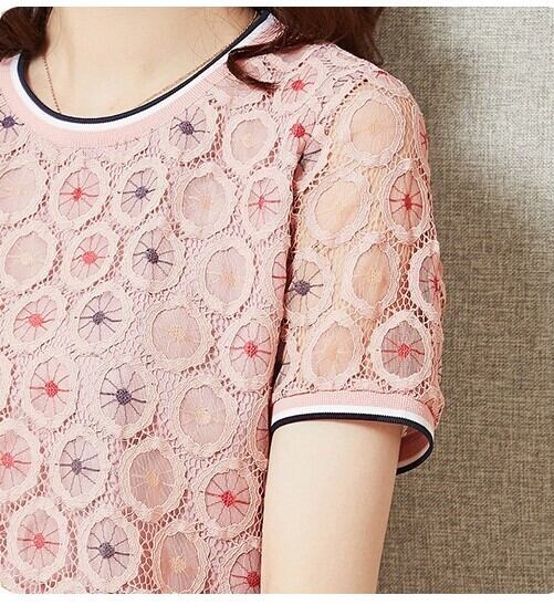 シアー切替 ラウンドネック カットソー 花柄レース 刺繍 透け感 半袖 トップス 春夏秋 大人きれい 20代 30代 40代 50代 tp0897
