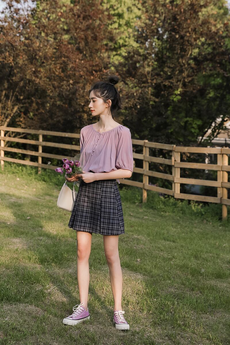 甘いデザインのシフォンシャツでこれ一つで大人かわいいが完成します。