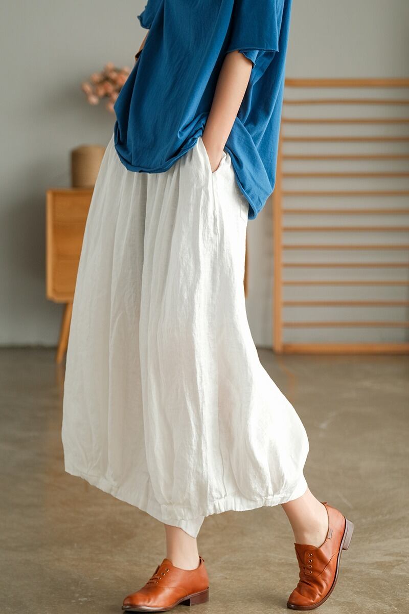 ワイドパンツ カジュアルパンツ ハイウエスト タック入り コットン リネン ウエストゴム 休日コーデ 春夏秋 20代 30代 40代 50代 pt0196