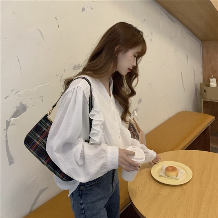 ティアードフリル ブラウス シャツ 長袖 春夏秋 大人かわいい オフィスコーデ 10代 20代 30代 40代 50代 tp0916