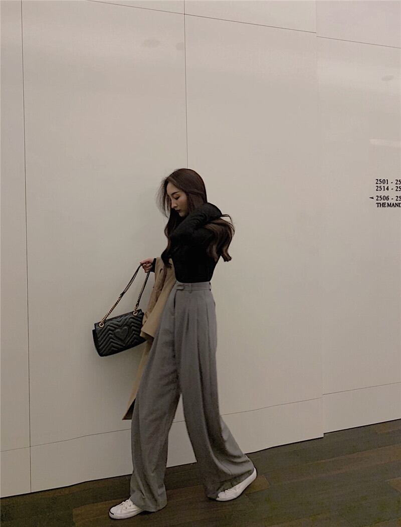 ワイドシルエットが綺麗なパンツ。