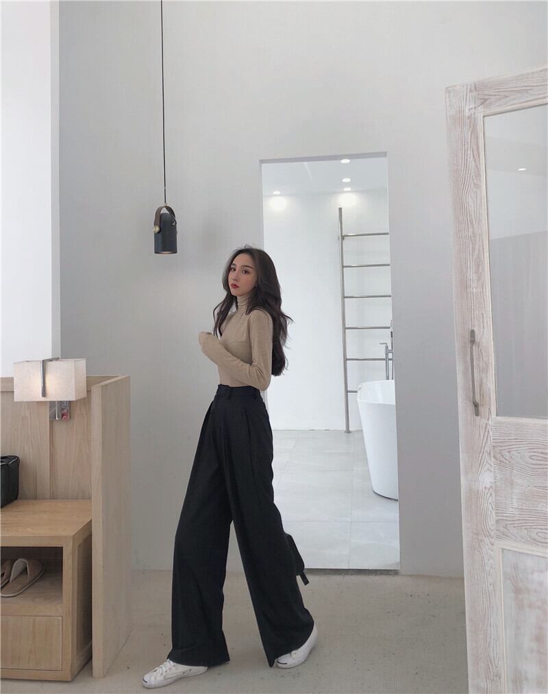 ワイドレッグパンツ 春秋冬 タック入り 大人きれい ハイウエスト オフィスコーデ 10代 20代 30代 40代 pt0199