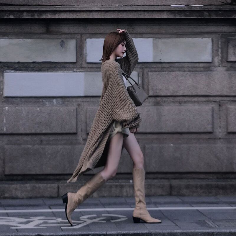 ざっくりオーバーサイズのロング丈ニットカーデ。