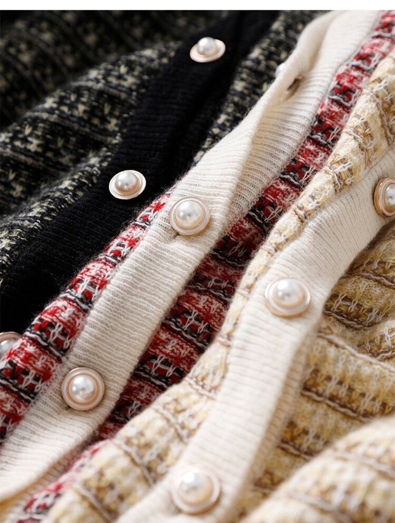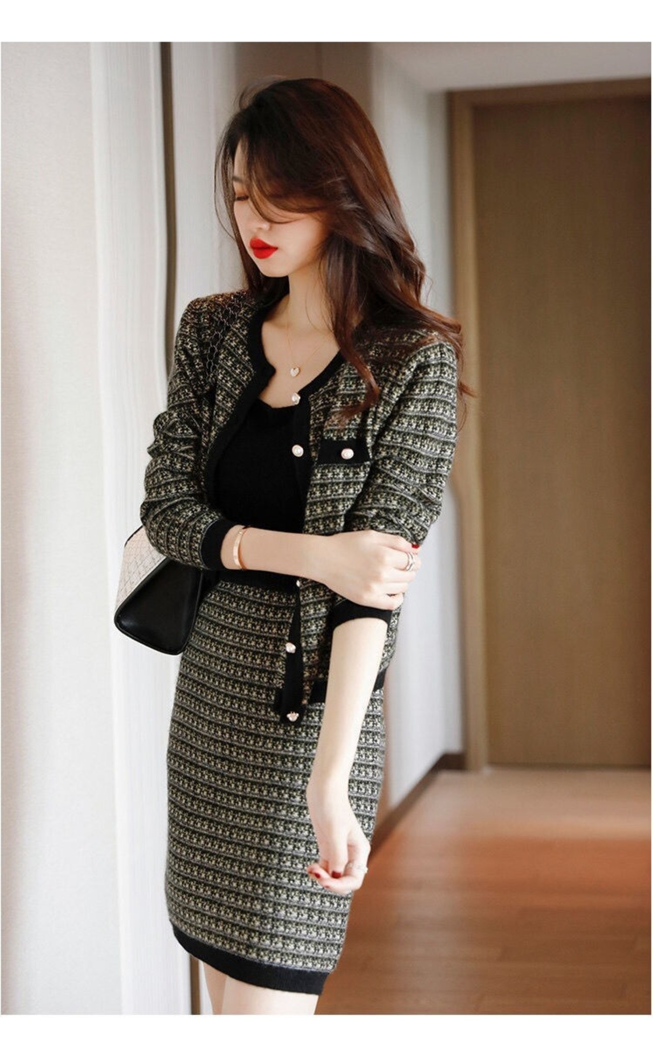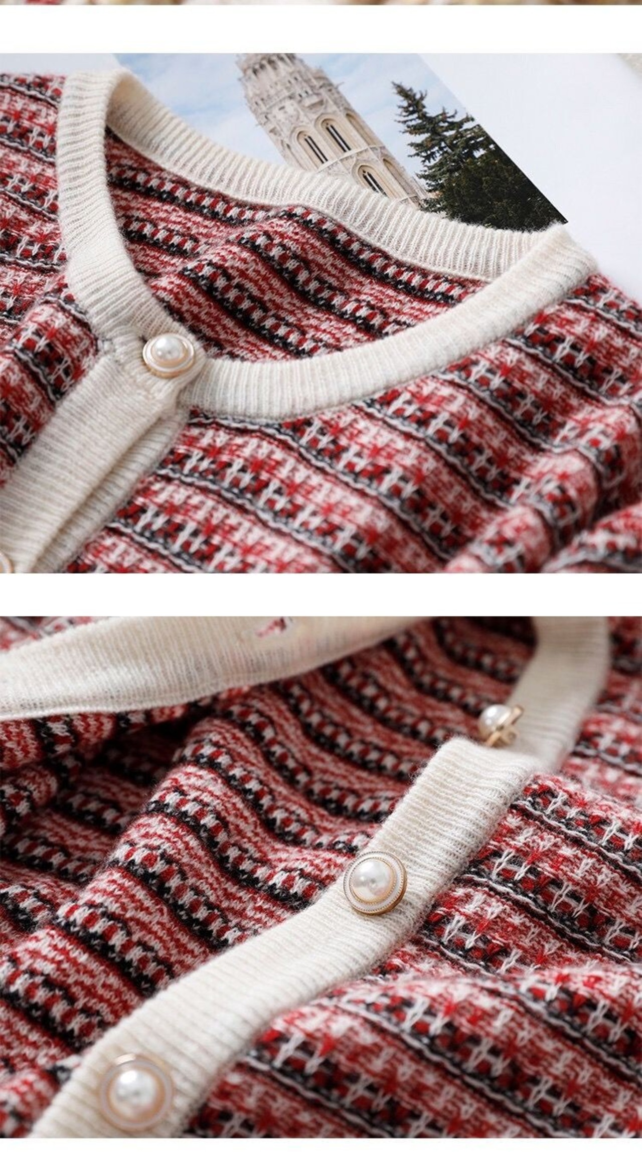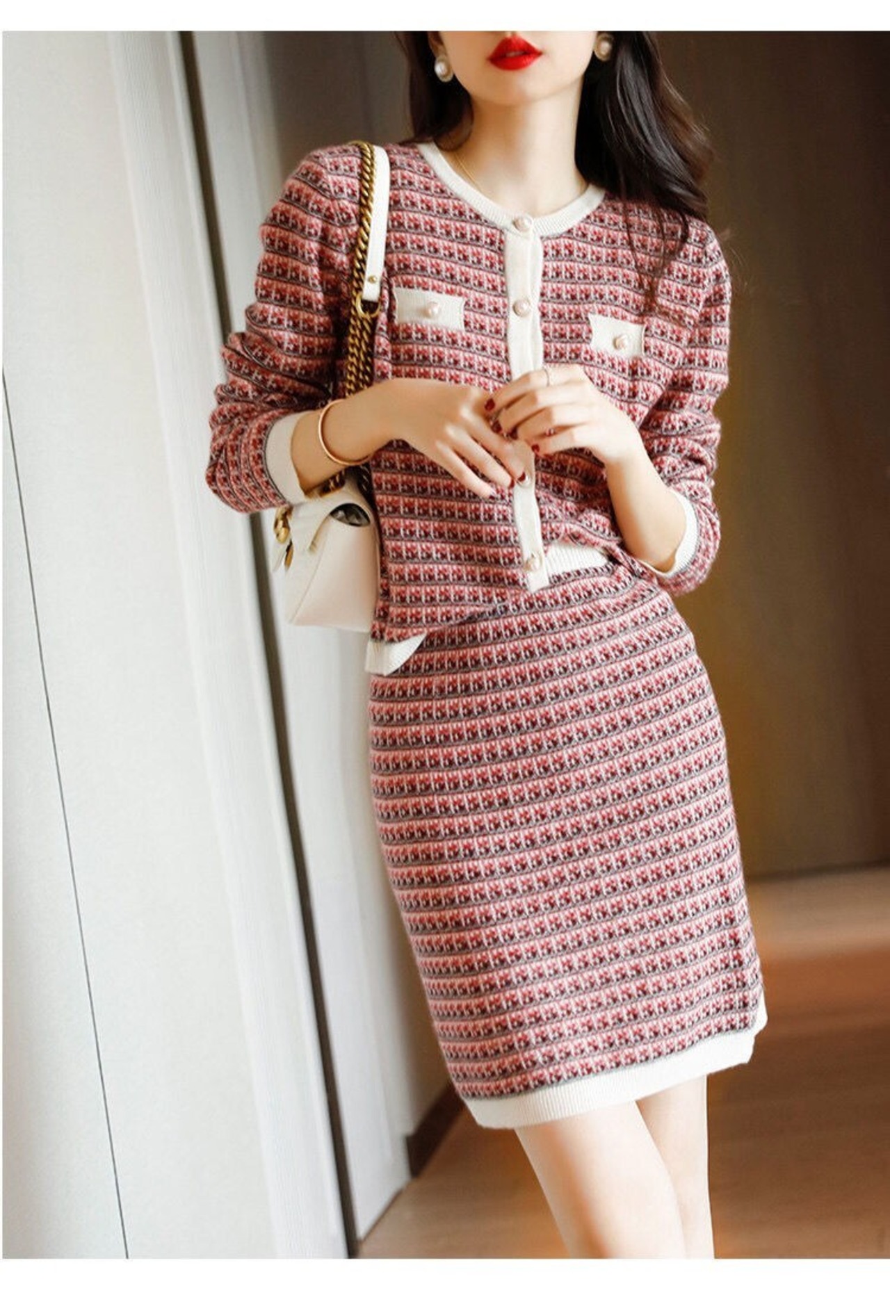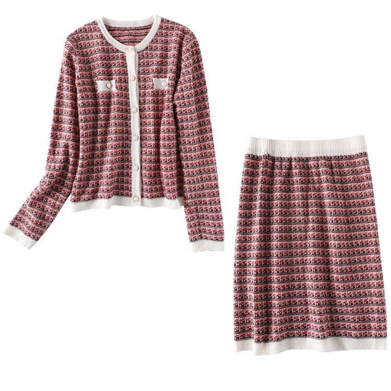 【セットアップ】ニットアップ カーディガン タイト ミニスカート パールボタン ラウンドネック 長袖 春秋冬 大人かわいい 大きいサイズ 10代 20代 30代 40代 st0289