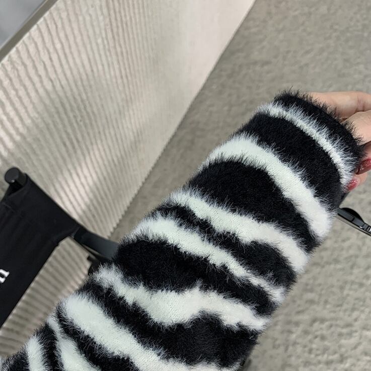 ゼブラ柄 ニットカーディガン もこもこ ショート丈 秋冬 長袖 デイリー 大人きれい 10代 20代 30代 40代 50代 tp0956