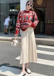 ミモレ丈ニットスカート フレア プリーツ 秋冬 フェミニン 大人きれい 10代 20代 30代 40代 50代 sk0262