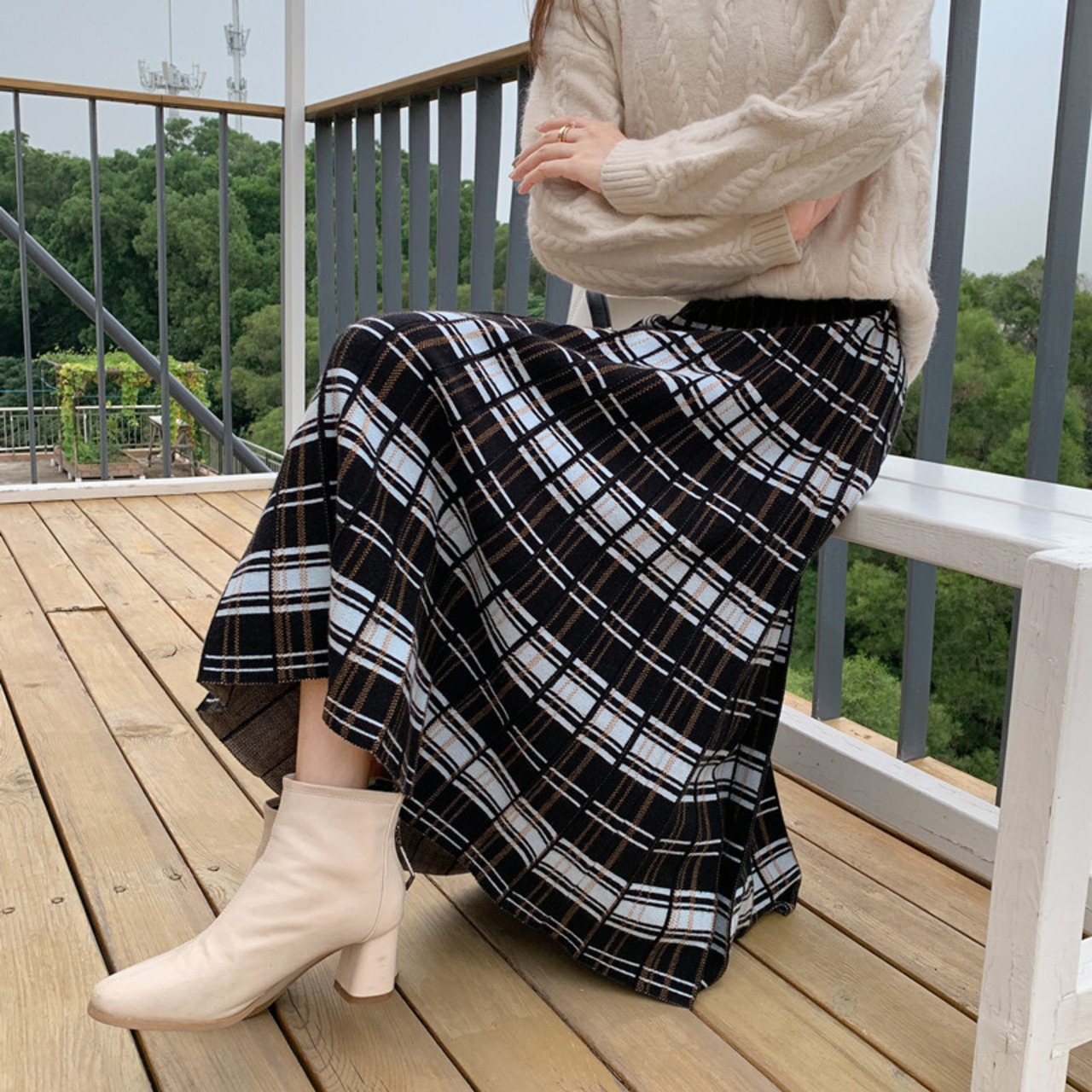 チェック柄 ニット プリーツスカート ミモレ丈 ロング丈 秋冬 フェミニン 大人かわいい 10代 20代 30代 40代 50代 sk0257