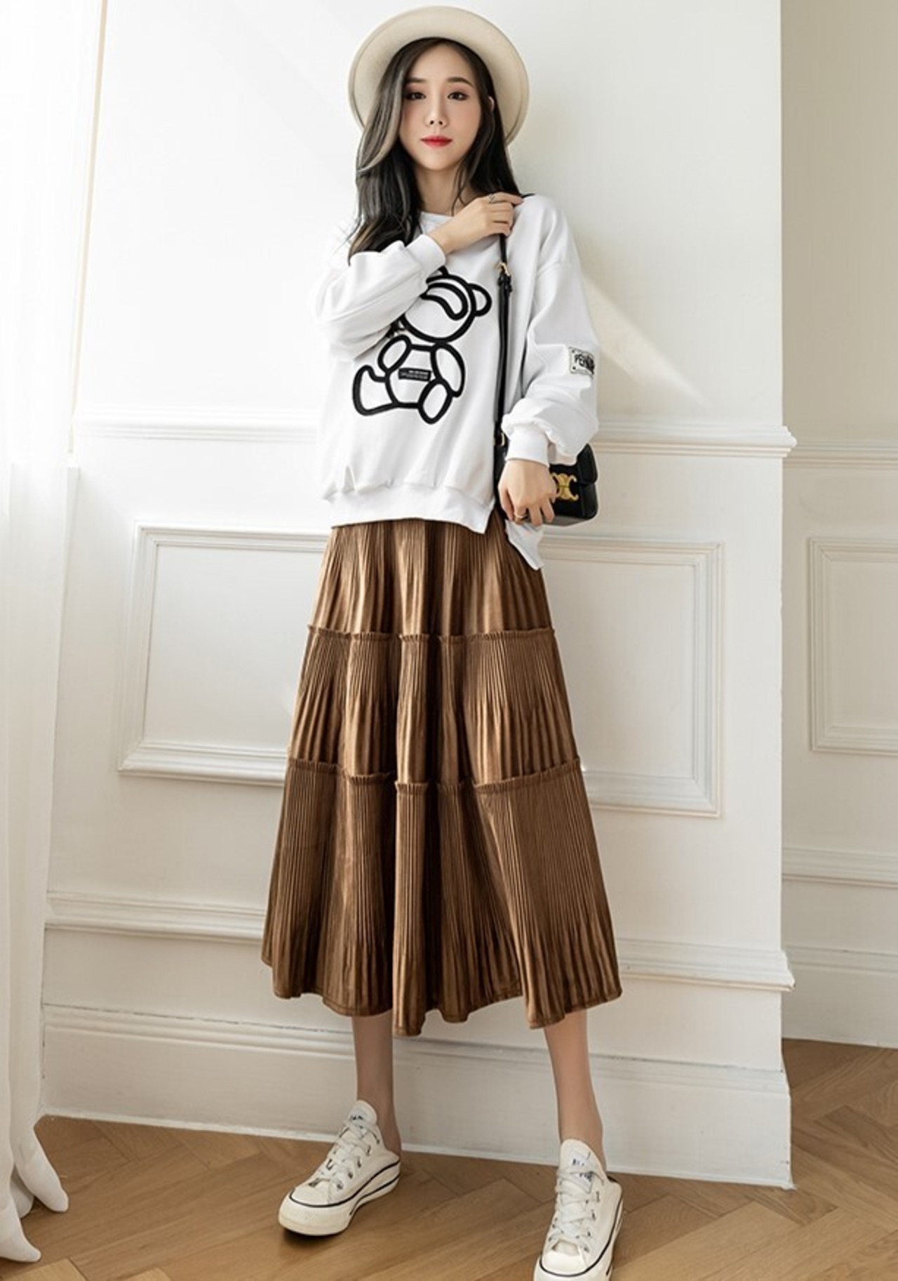 コーデュロイ ティアード プリーツスカート ミモレ丈 秋冬 ベロア フェミニン 大人かわいい ガーリー 10代 20代 30代 40代 50代 sk0260
