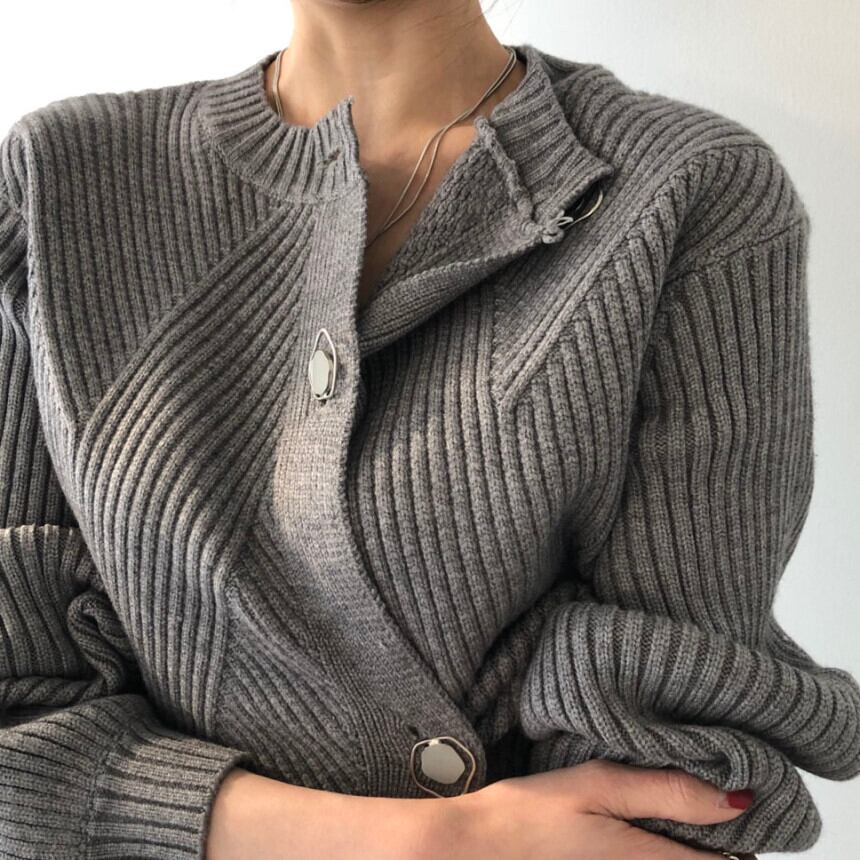 ダメージ加工ニット ラウンドネック ショート丈 厚手リブニット 春秋冬 大人かわいい 個性的 10代 20代 30代 40代 tp0964