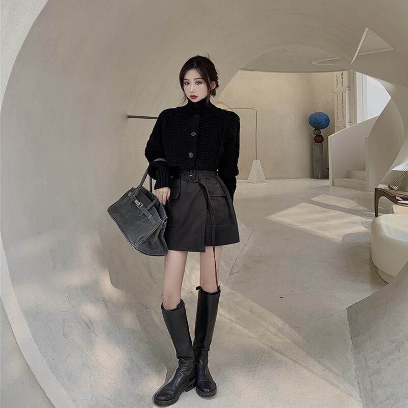 【セットアップ】ハイネックショート丈ニット ノースリーブワンピース ミニ丈 重ね着 長袖 秋冬 大人かわいい 10代 20代 30代 st0310