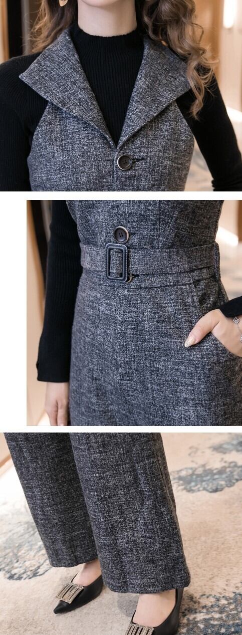 襟付きサロペットパンツ オールインワン レトロかわいい ウール調 秋冬 大人かわいい 大人カジュアル 20代 30代 40代 al0124