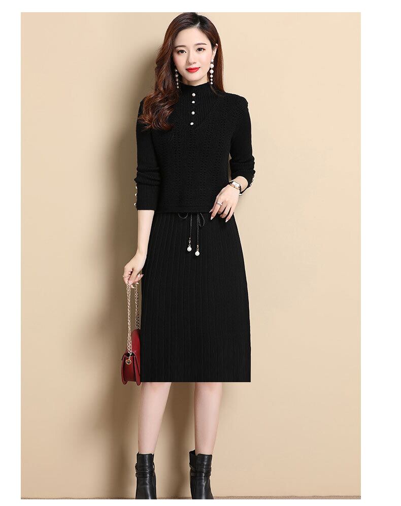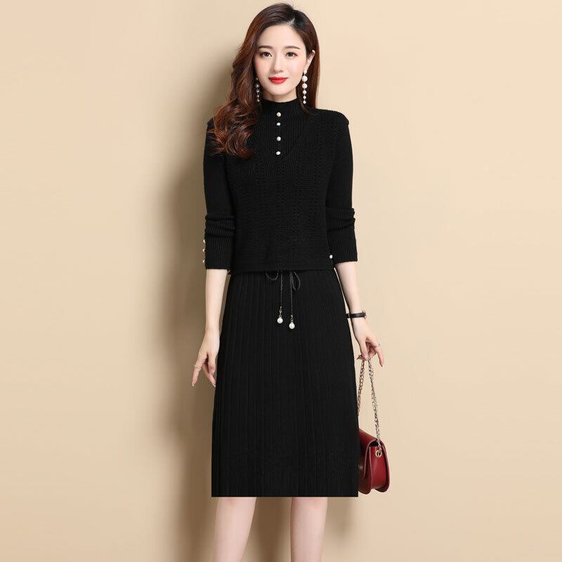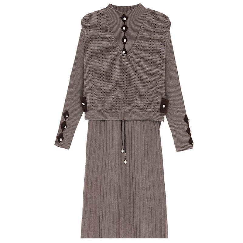 【セットアップ】ニットワンピース ベスト ひざ丈 プリーツデザイン ワンピース レトロかわいい 秋冬 大人かわいい 20代 30代 40代 50代 op0657