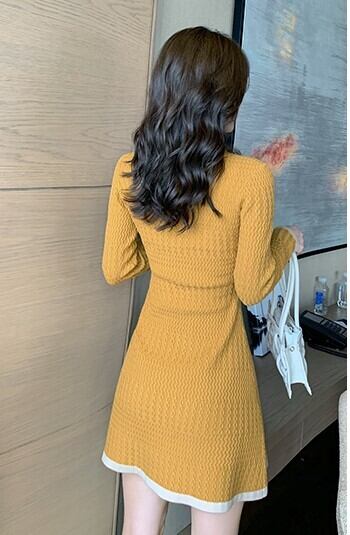 バイカラーニットワンピース フレア 襟付き ミニ丈 長袖 秋冬 大人かわいい ガーリー 10代 20代 op0662