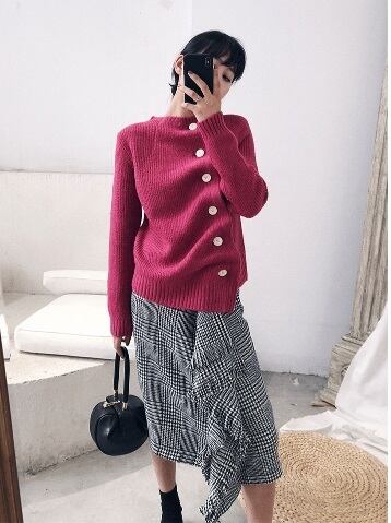 アシンメトリーニット セーター ラウンドネック サイドボタン 長袖 秋冬 大人カジュアル 大人きれい 10代 20代 30代 40代 50代 tp0985