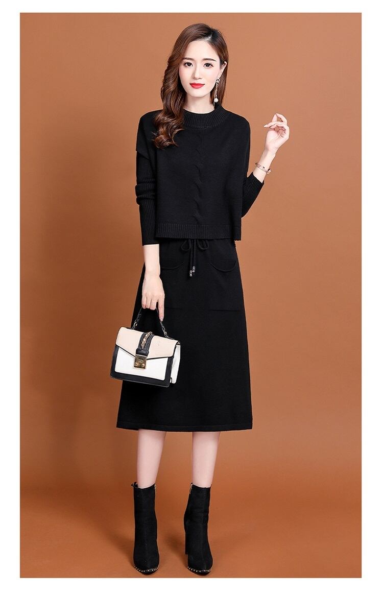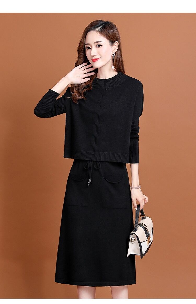 【セットアップ】ニットワンピース ニット半袖カットソー ひざ丈 重ね着 ティアード 長袖 秋冬 大人きれい 20代 30代 40代 50代 op0660