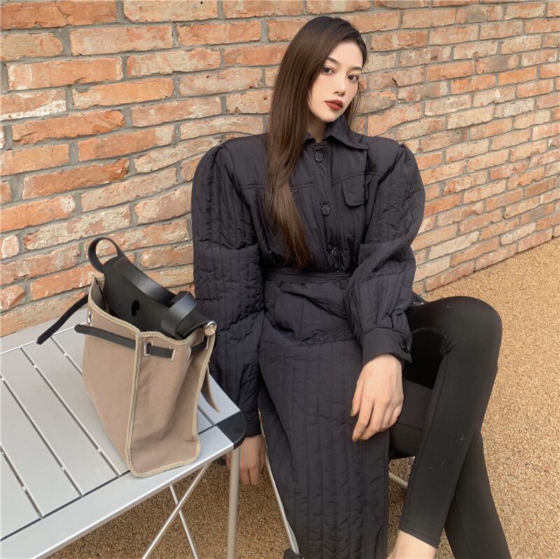 中綿コート ロング丈 襟付き 秋冬 大人きれい 個性的 10代 20代 30代 40代 50代 ot0462