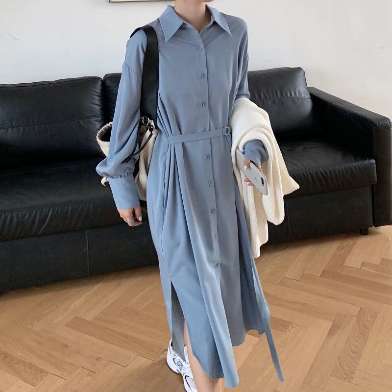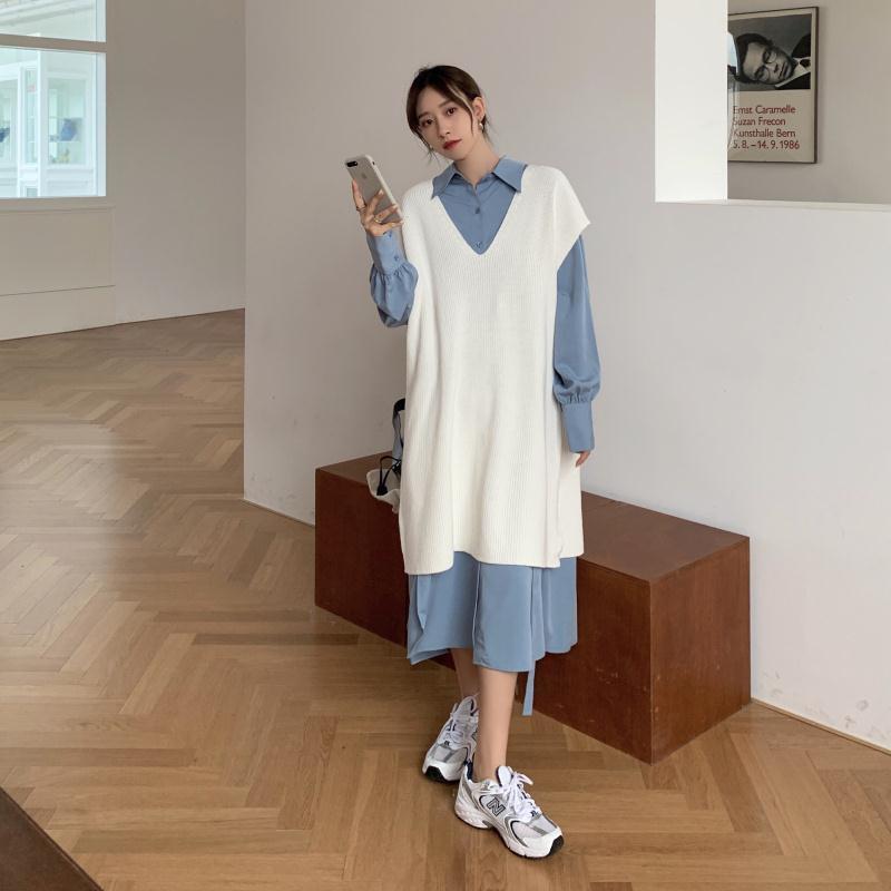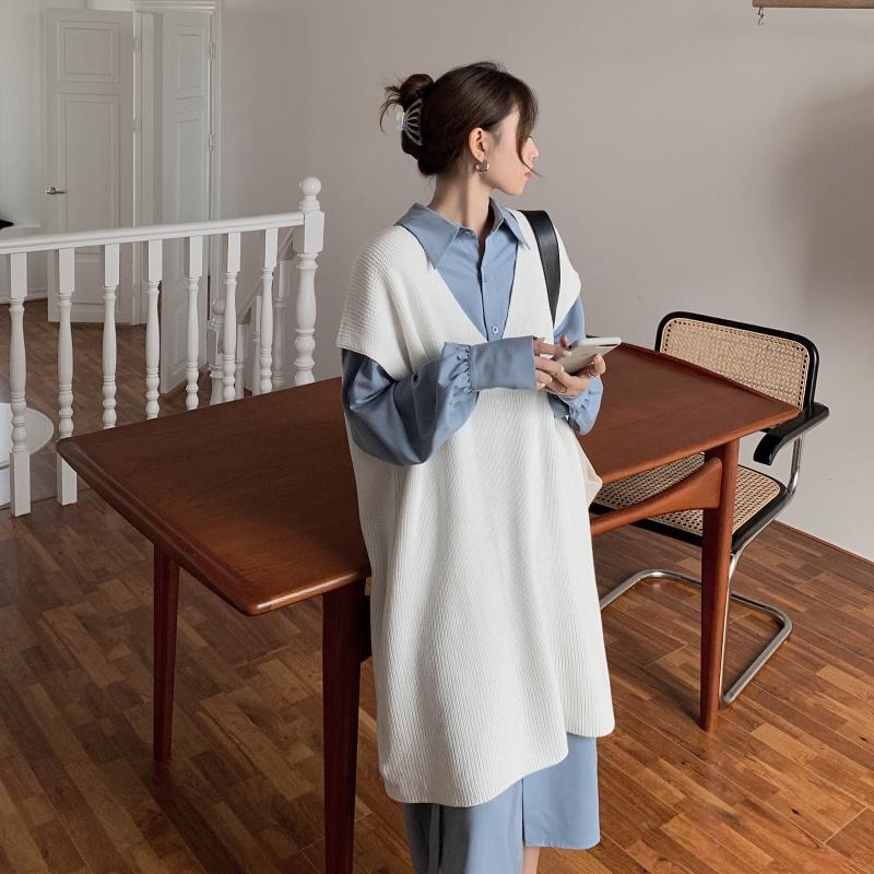 【セットアップ】シャツワンピース ベストワンピース 長袖 ノースリーブ 春秋冬 襟付き 大人きれい 10代 20代 30代 40代 st0314