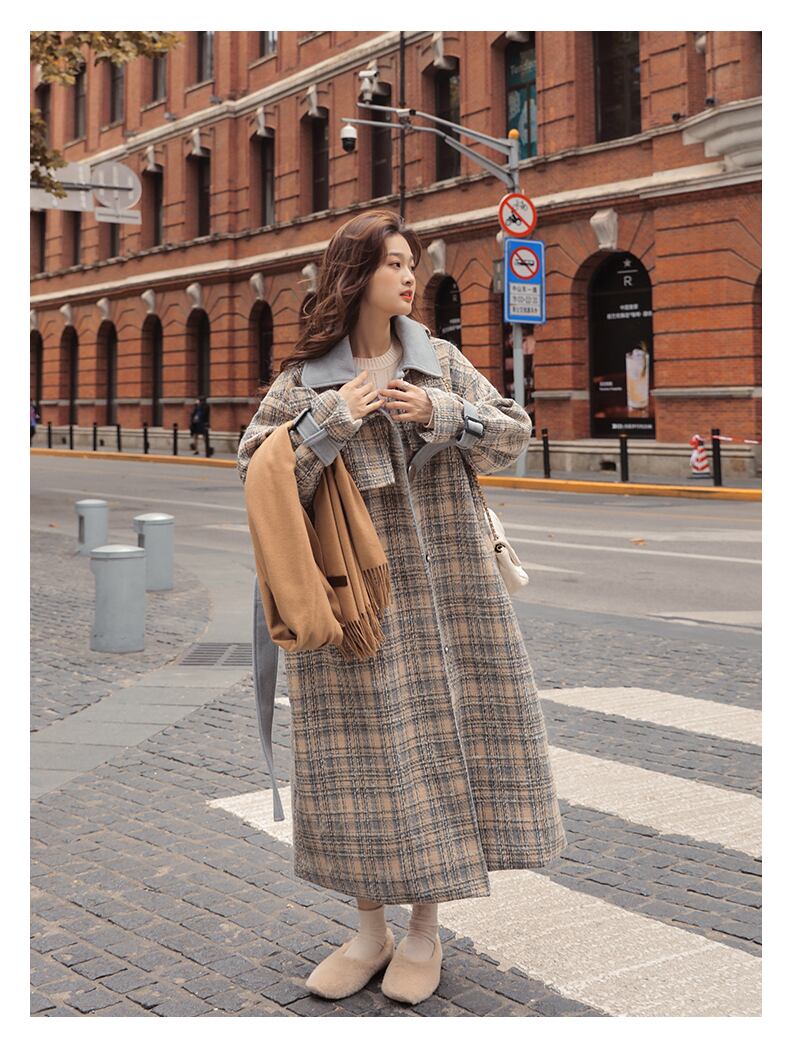 チェック柄 バイカラーコート ロング丈 アウター 秋冬 大人かわいい カジュアル 大人きれい 10代 20代 30代 40代 ot0477