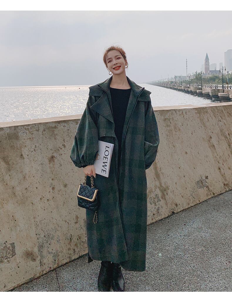 チェック柄ロングコート ファスナー付き フード付き ランタンスリーブ アウター 秋冬 大人きれい 10代 20代 30代 40代 50代 ot0478