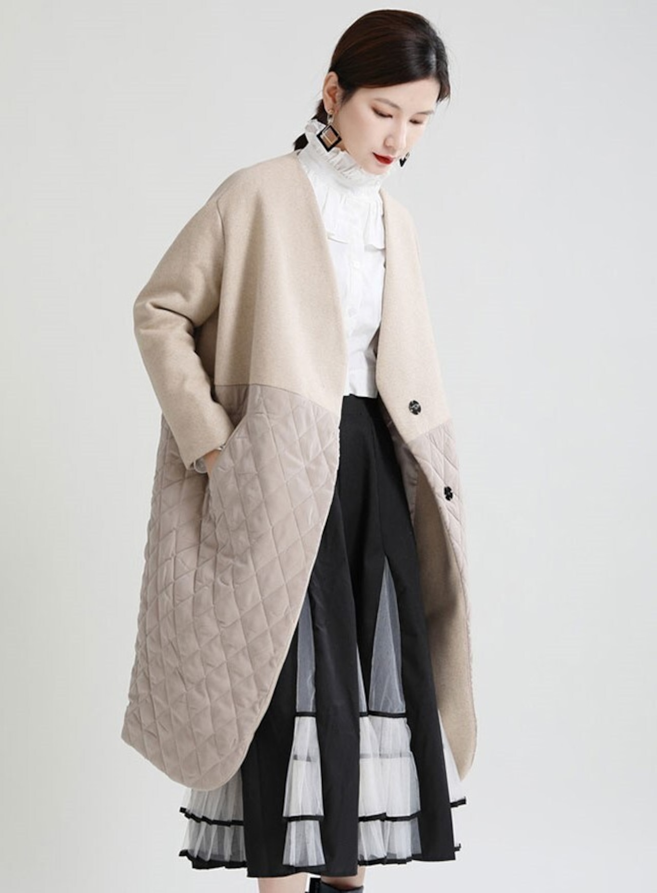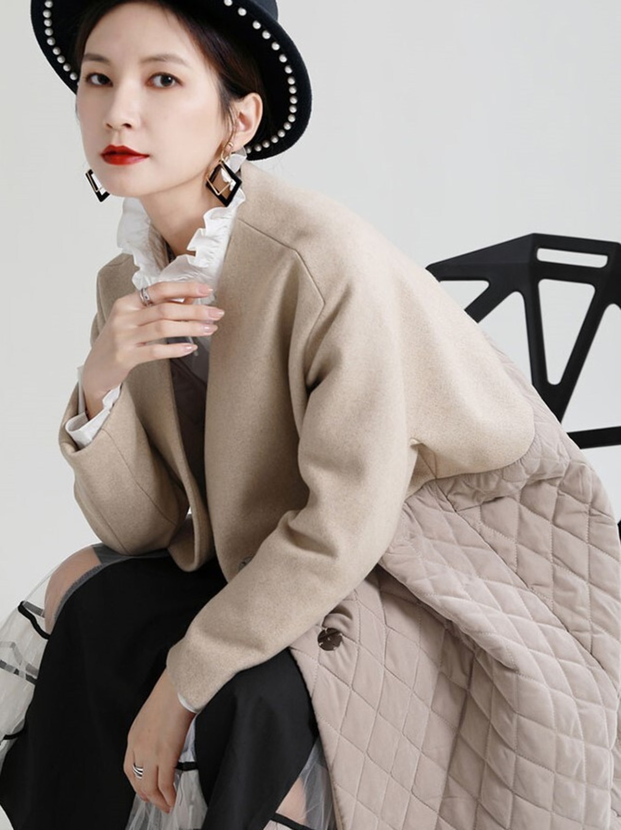 ドッキングウールコート キルティング ノーカラー アウター 秋冬 大人きれい おしゃれ 20代 30代 40代 50代 ot0482