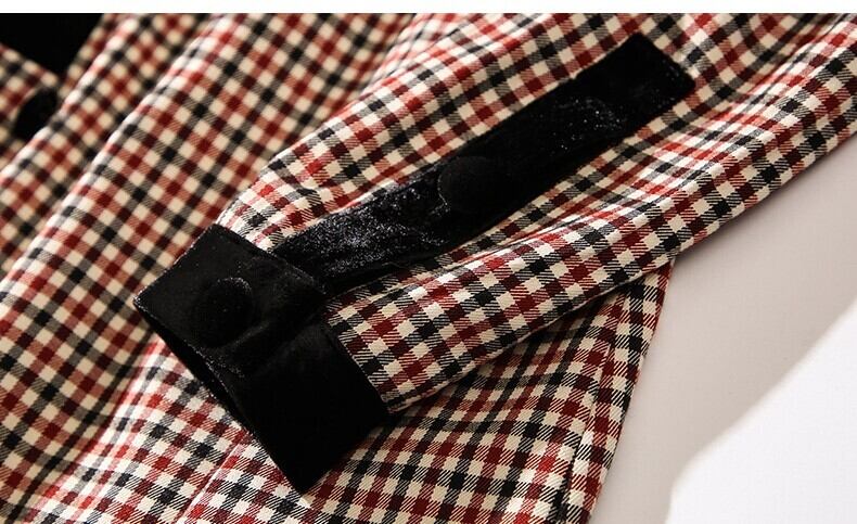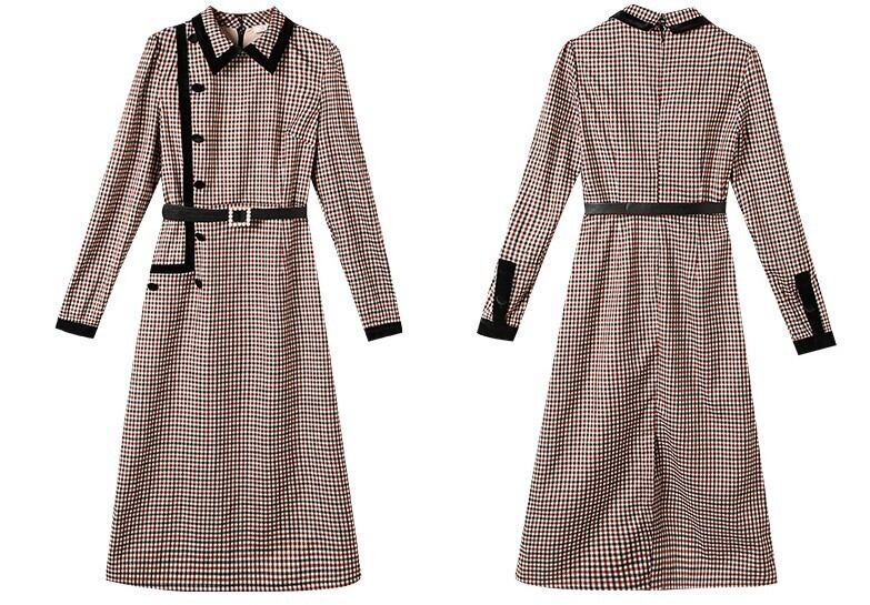 チェック柄ワンピース 長袖 レトロ 襟付き 秋冬 ベロア ミモレ丈 大人かわいい 10代 20代 30代 op0674