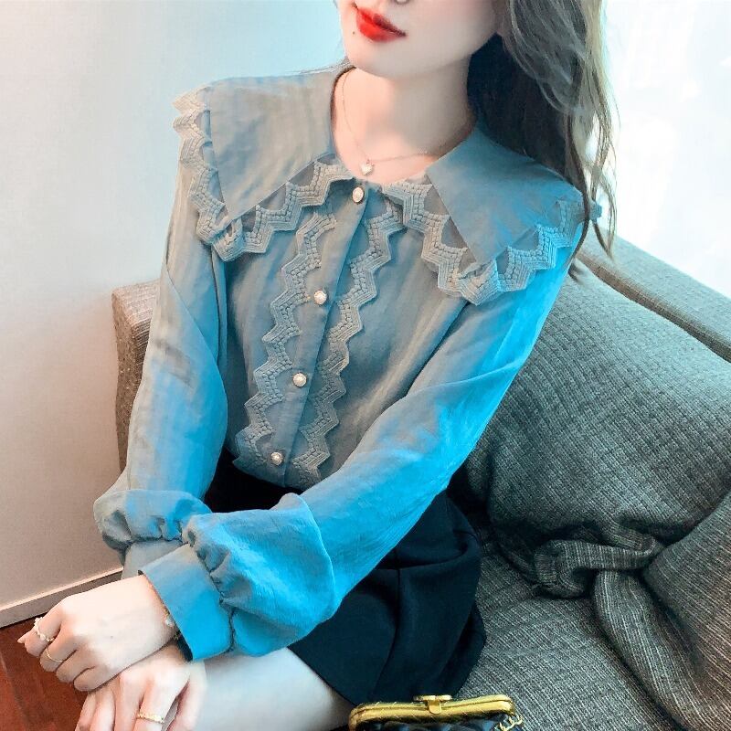[春物入荷]ブラウス カラーコンシャス レース シャツ 襟付き 春秋 大人きれい ガーリー オフィスコーデ 10代 20代 30代 40代 tp1008