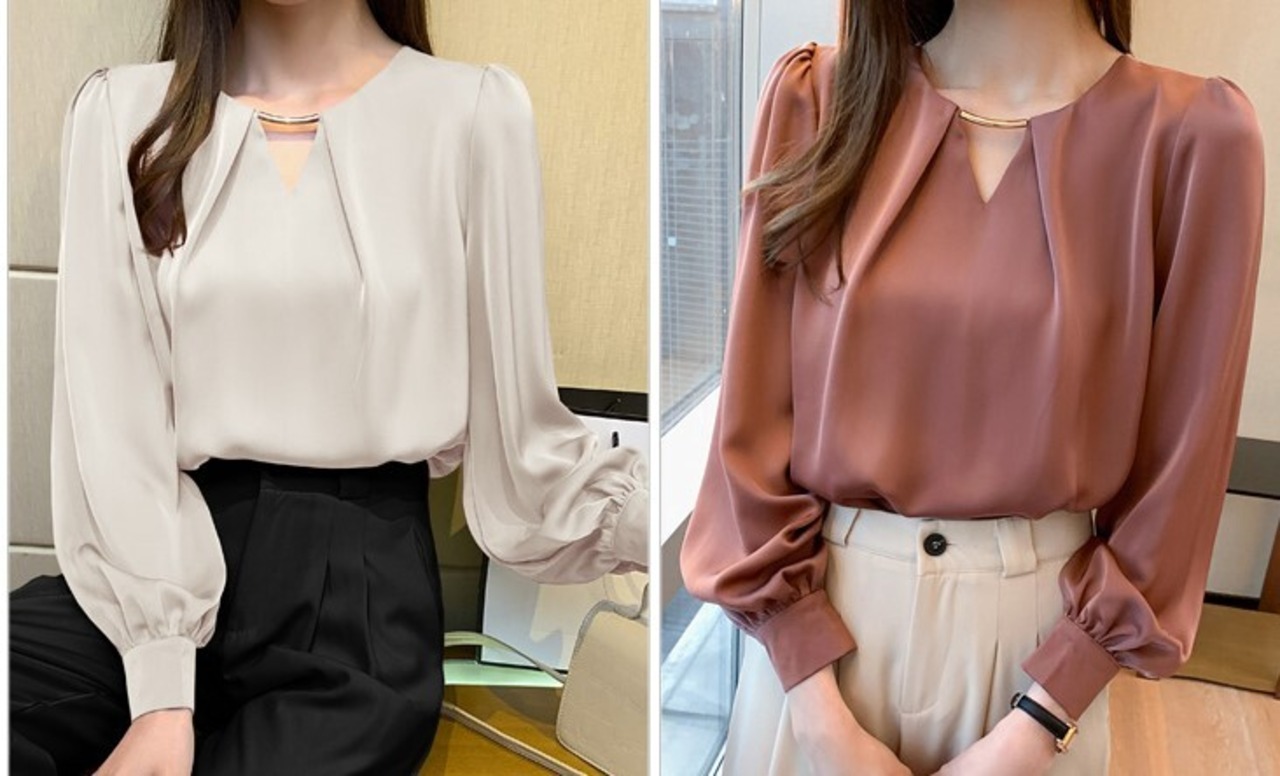 襟元のVカットデザインがおしゃれなさらりとした着心地のブラウス♪
