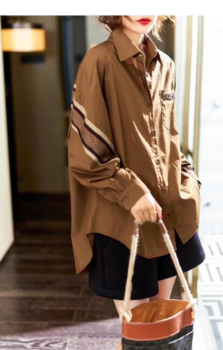 コントラストシャツ ブラウス オーバーサイズ 長袖 春秋 大人カジュアル 20代 30代 40代 50代 tp1016