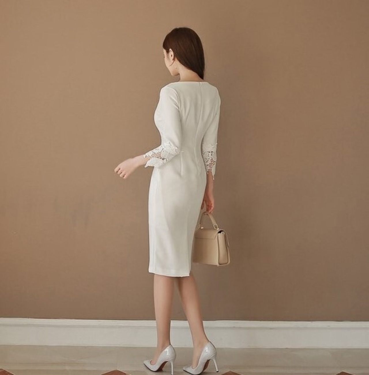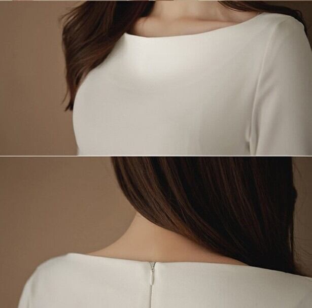 ひざ丈ワンピース 透かしレース ボートネック 七分袖 春夏秋 大人きれい オフィスコーデ 20代 30代 40代 50代 op0690