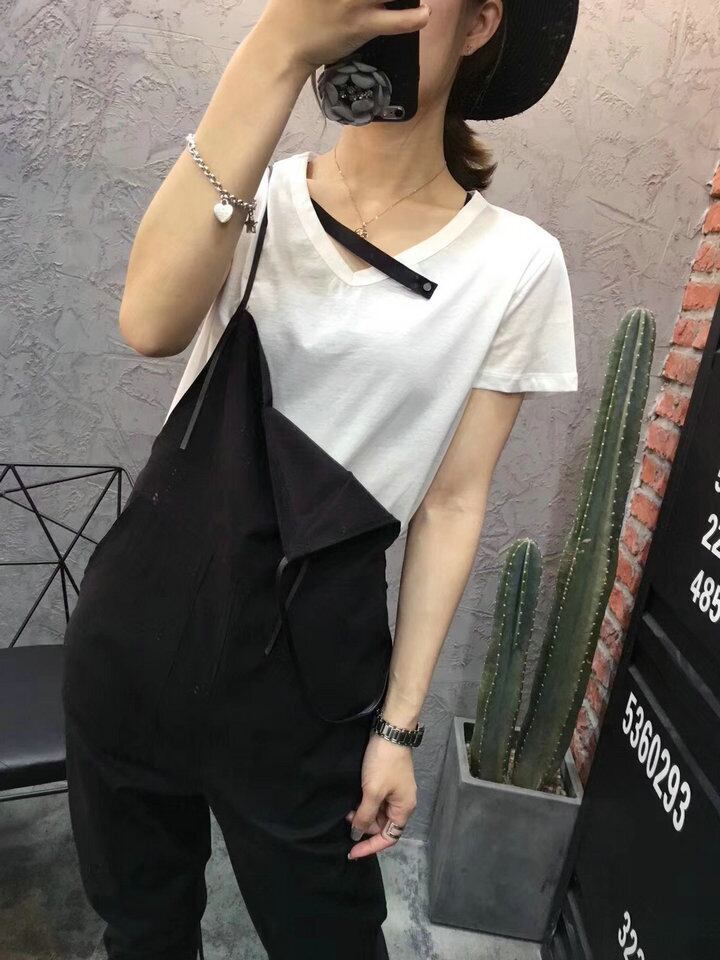 カジュアルになりがちのオールイワンも細めの肩ひもを使うことでガーリーらしさを演出。