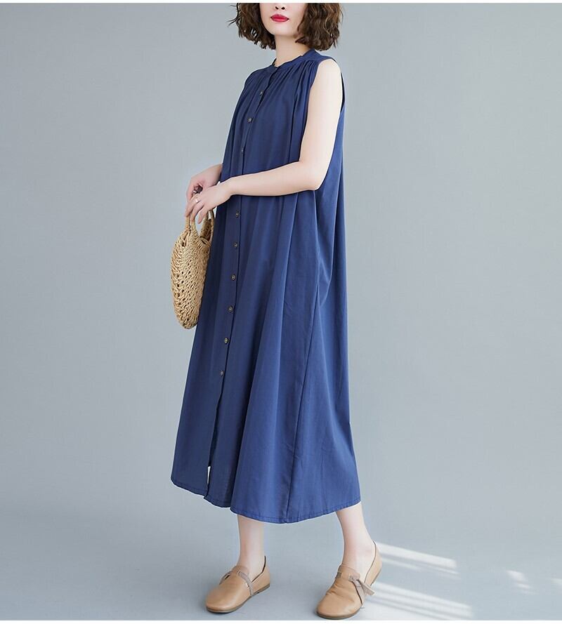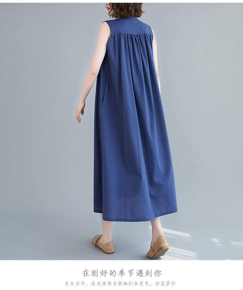 コットンリネン ノースリーブ ワンピース ロング丈 ロングジレ 春夏 20代 30代 40代 50代 op0694
