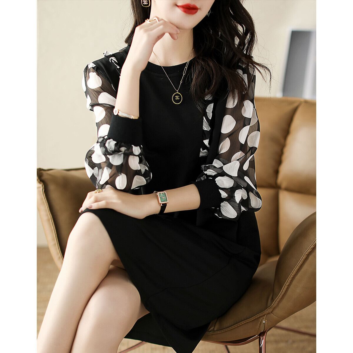 シアースリーブワンピース ドット柄 フリル ミニ丈 Aライン 長袖 春夏秋 10代 20代 30代 40代 50代 op0695