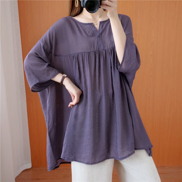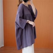 オーバーサイズ コットンリネンブラウス 七分袖 春夏 大人かわいい 20代 30代 40代 50代 tp1049