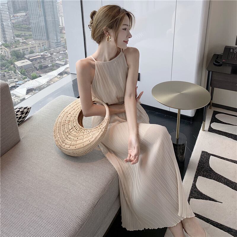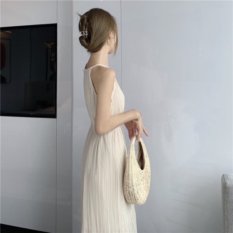 ホルターネックワンピース ミモレ丈 プリーツ 春夏 大人きれい エレガント 20代 30代 40代 op0703