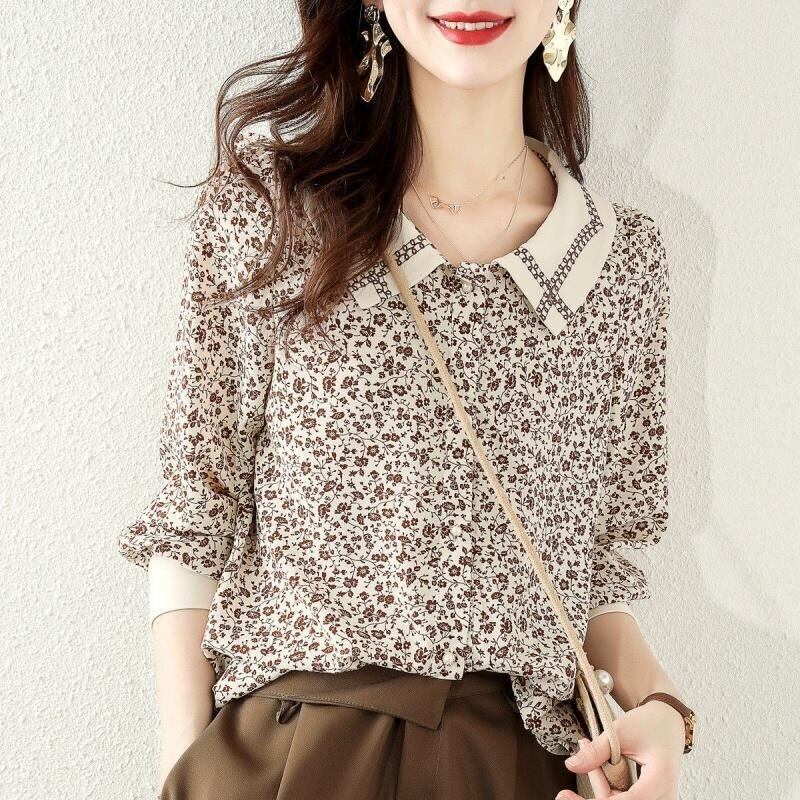 小花柄ブラウス スクエアカラー シャツ 長袖 春秋 レトロかわいい カジュアル 20代 30代 40代 50代 tp1064