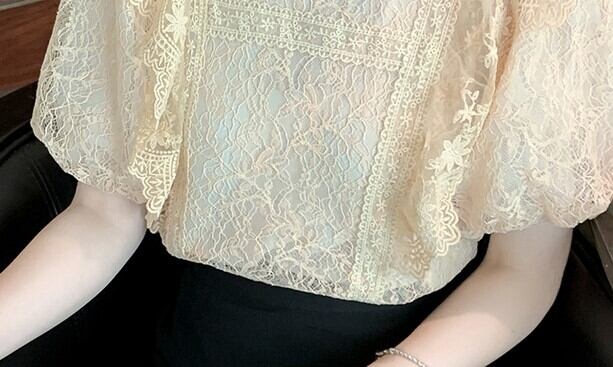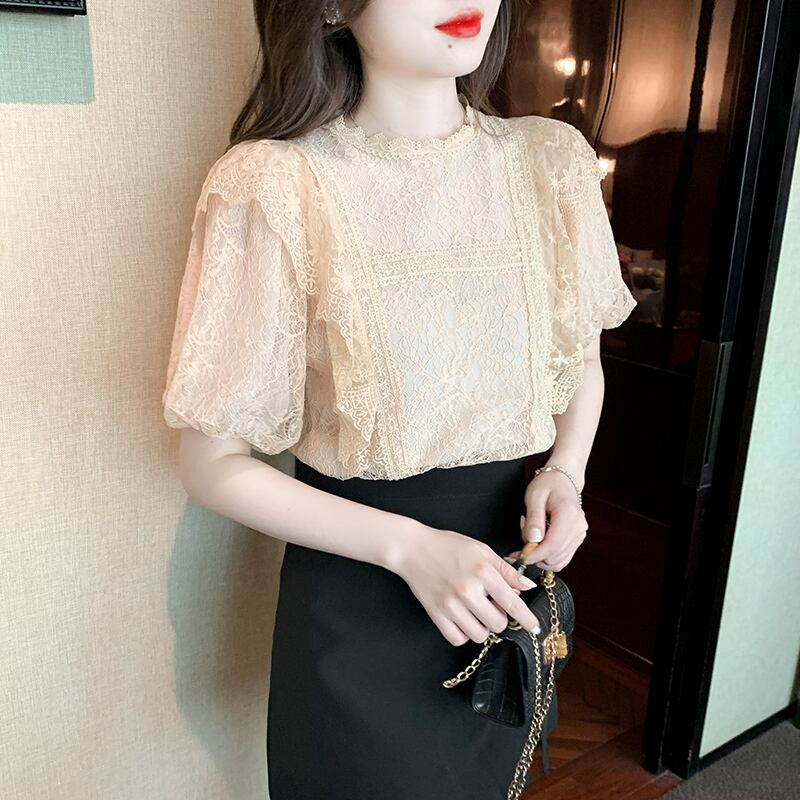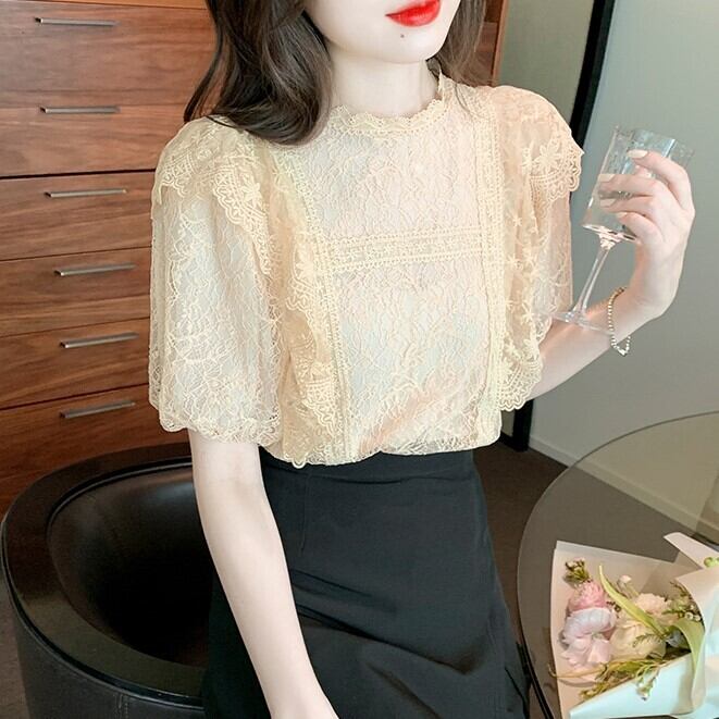 パフスリーブレース ブラウス 半袖 春夏 透け感 大人かわいい ガーリー 20代 30代 40代 50代 tp1066