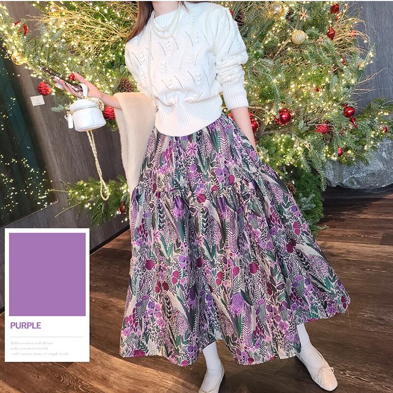 パフスカート ボタニカル柄 フレア ミモレ丈 花柄 大人きれい 春夏 10代 20代 30代 40代 sk0281